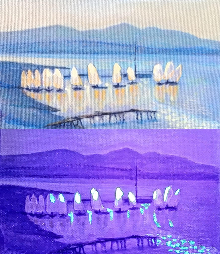 Швертботы «Оптимист» в яхт-клубе. День и ночь. Серия «Яхт-клуб». Проект «Светофизика в живописи» ZhNataly.