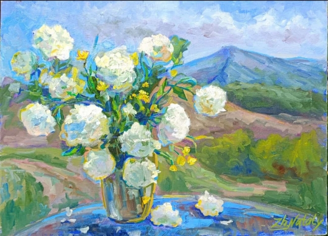 Бульденеж по сути импрессионистический цветок. Увлекло меня рисование натюрморта в пейзаже.
