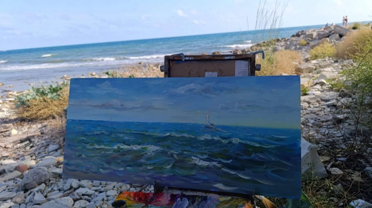 У каждого художника есть свои любимые места, на которые он возвращается для пленэра. Вот и мы облюбовали одно из таких мест в открытом море. Там, в какую сторону ни повернись, всегда будет отличный мотив в любое время дня. Эти волны были написаны. При лёгком шторме в солнечный день.