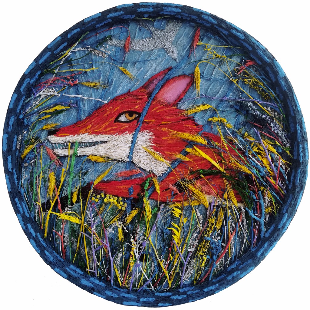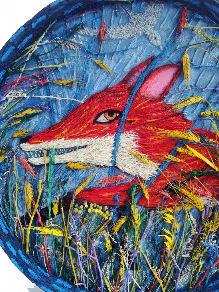 Дерево, папье маше, алкидная эмаль, нитки, масло, акрил,смешанная техника