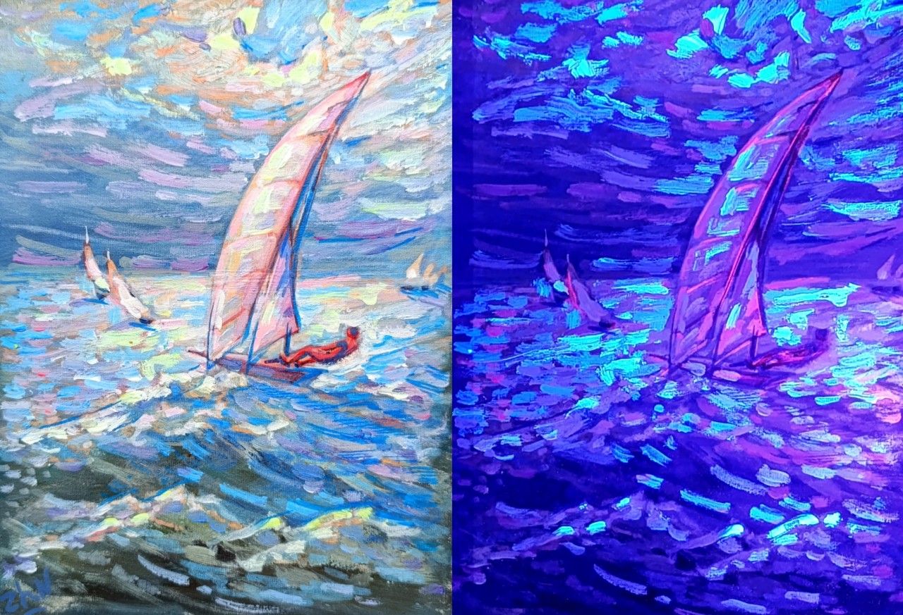 Регата. Серия «Яхт-клуб». День и ночь. Проект «светофизика в живописи» ZhNataly, светящаяся картина.