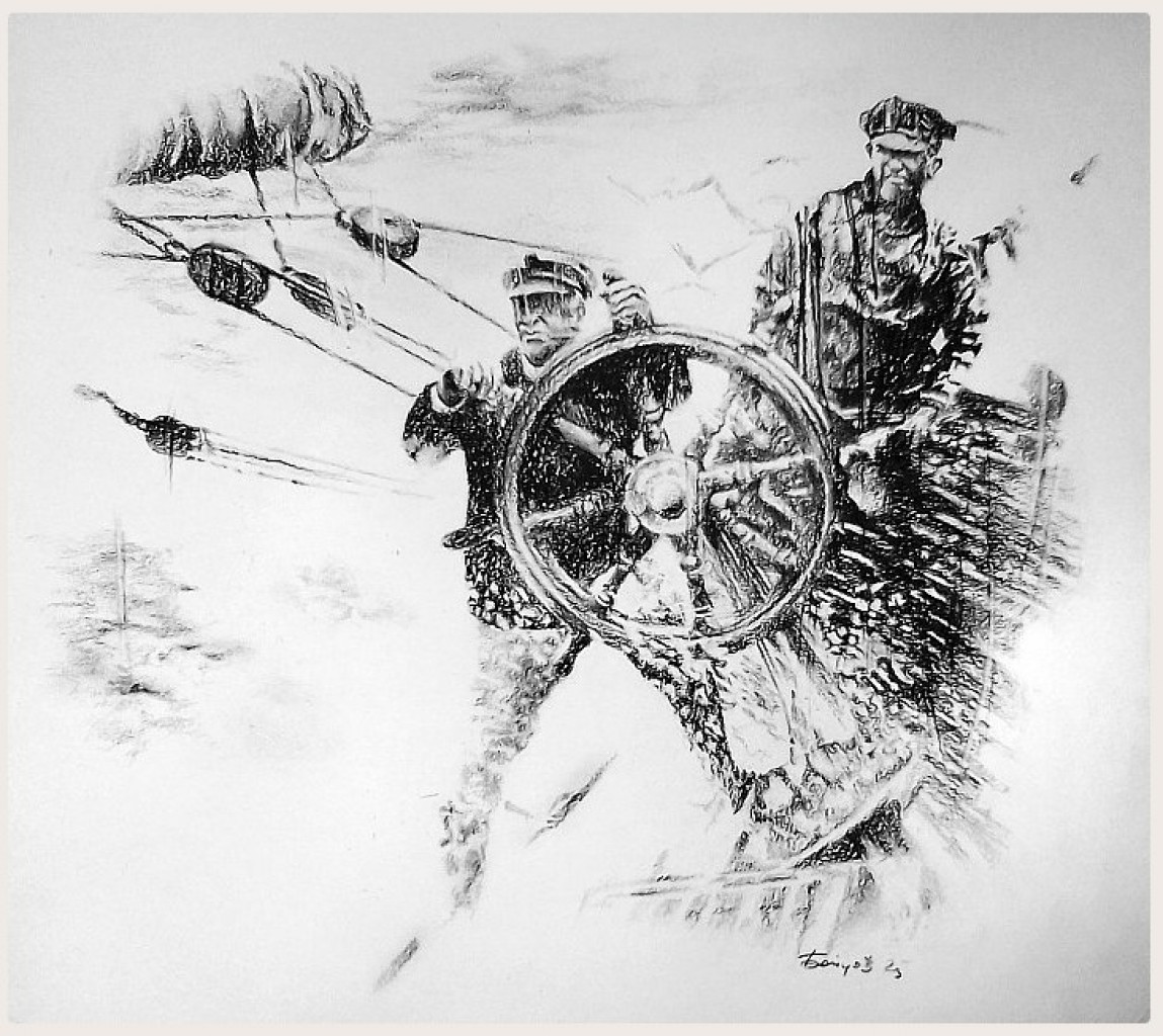 Первая. вид со спины. Старый седой человек раскинув руки стоит на вершине горы. Волосы его развиваются, он медленно рассыпается в прах. вторая. начало прошлого века. Несколько ...