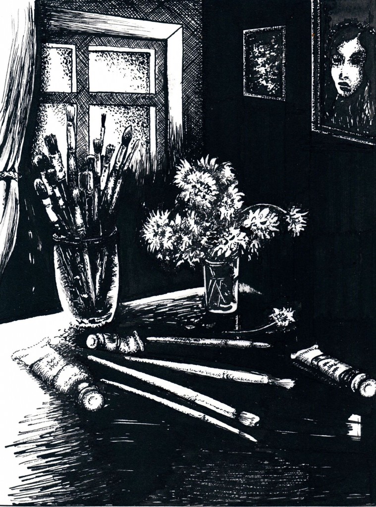 Drawing on paper – indian ink, pen. Vladimir Abaimov.