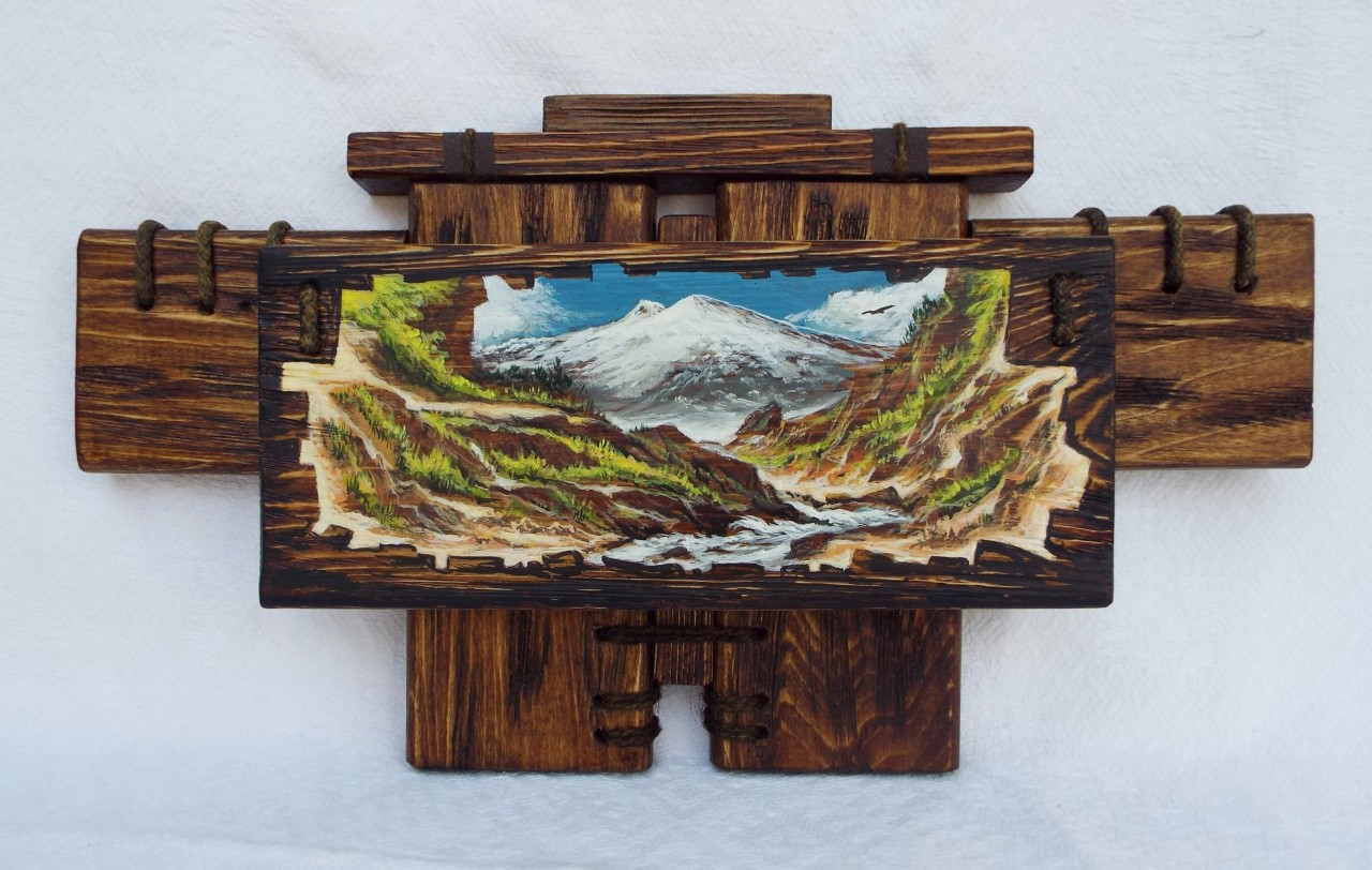 Авторская работа,оригинал.Указан внутренний размер живописи маслом. Браширование,пропитка,матовый лак.
