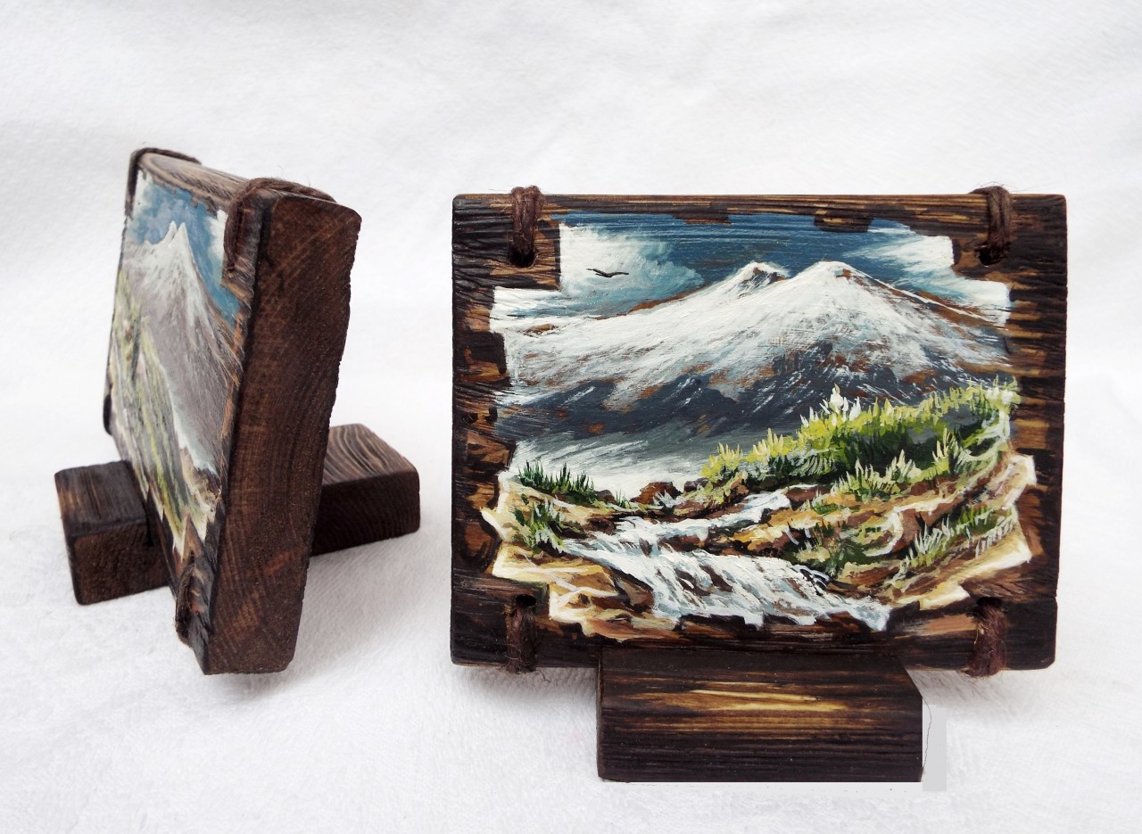 Авторская работа,оригинал.Доска на подставке,масло,браширование,матовый лак.